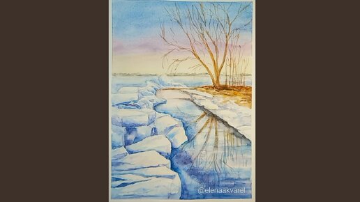 Как нарисовать лед акварелью | зимний пейзаж акварелью | акварельный этюд