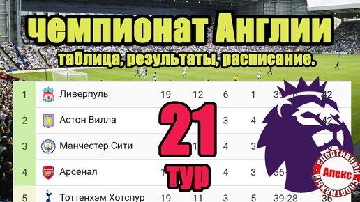 Чемпионат Англии (АПЛ). 21 тур. Результаты, расписание, таблица.