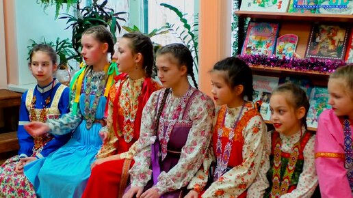 Фольклорный ансамбль "Смородина" на святочном вечере в Косогорской библиотеке.