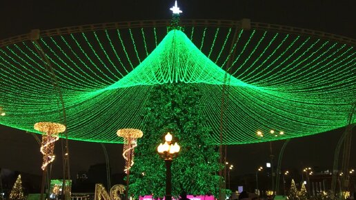 Роскошная новогодняя ёлка с огромным светодиодным шатром у парка Горького