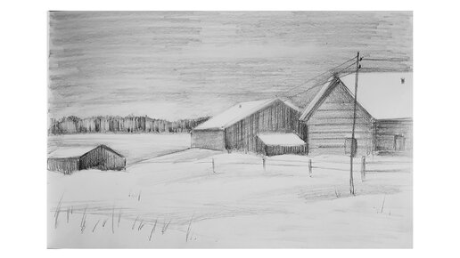 Как нарисовать несложный зимний пейзаж простым карандашом