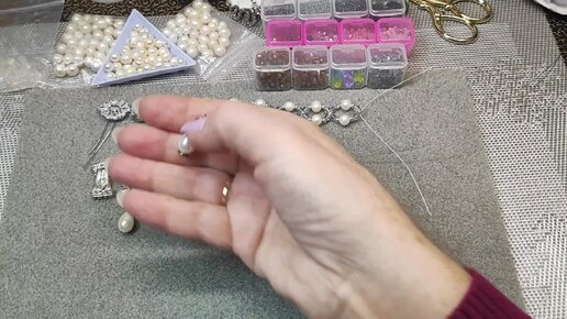 Красивый элемент ,обшитый биконусами для украшений. Колье с жемчугом.