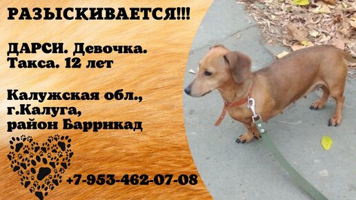 Пропала собака! ДАРСИ. Девочка. Такса. Калужская область, г.Калуга, р-он Баррикад.