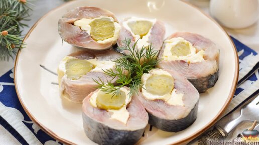 Всё необходимое в одной закуске. Рулет из сельди с сыром и огурцом