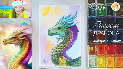 Как рисовать Дракона, символ 2024 года, рисуем карандашом и акварелью, урок рисования для начинающих