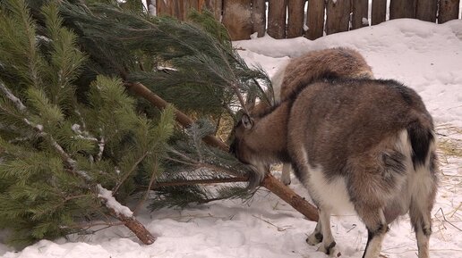 Витамины в зоопарк: новогодние ёлки идут на корм животным
