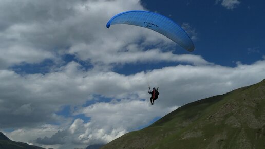 Полет на параплане над Чегемским ущельем с орлами
