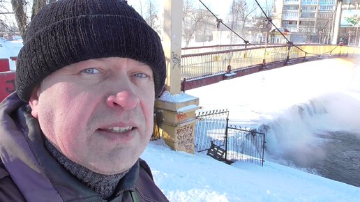 Я возле моста. Под мостом водопад и пар. Зима 2024 год