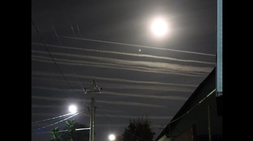Луна на фоне жутких и огромных ХИМТРЕЙЛОВ ИЛИ ХИМИОТРАСС. Контроль населения или умышленное сокращение?
