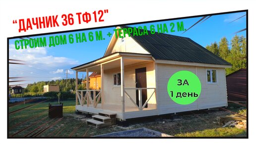Строим недорогой, каркасный, дачный дом “Дачник 36 Тф12” 6 на 6 м. + терраса. За 1 день!
