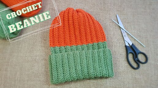 Очень простая двухцветная шапочка крючком. Шапочка бини для новичков.