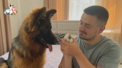 Немецкий овчарёнок знакомится с маленьким кроликом 🐕🦺🐰