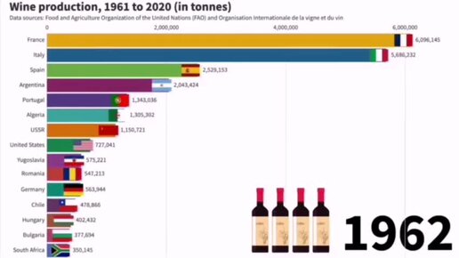 Объёмы производства вина. Лидеры. Аналитика за 60 лет.