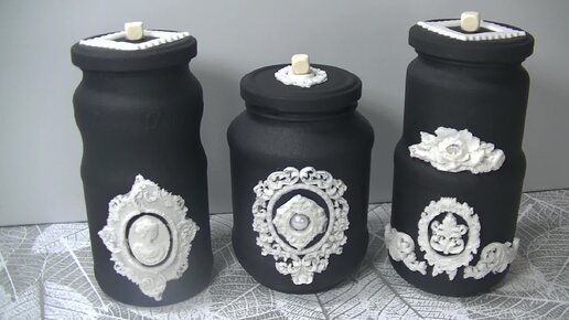 Простейший декор 3х стеклянных баночек .
