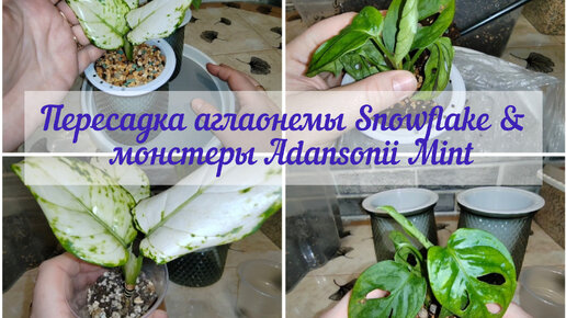 Пересадка аглаонемы Snowflake и монстеры Adansonii Mint в новое кашпо с фитильным поливом