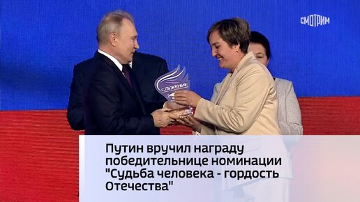 Путин вручил награду победительнице номинации "Судьба человека - гордость Отечества"