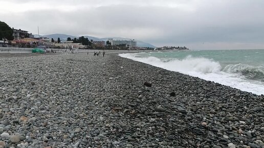 Имеретинка. Пляжи Сириус и Сочи-Парк отель. Январь 2024. Ураганный ветер, море штормит.