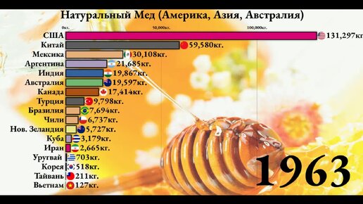 Производство меда 1961-2021 год (Америка, Азия, Австралия)[ИНФОГРАФИКА]. Кто же лидер?