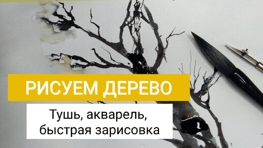 Рисуем дерево: быстрый скетчинг, тушь, акварель
