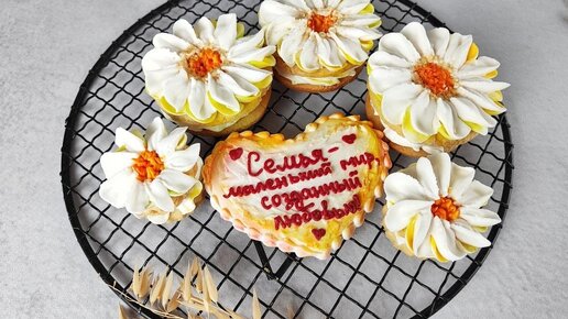Зефиросендвичи, роспись песочного печенья айсингом для цветов. Сердце, ромашки