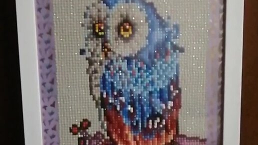 2.Работа. Сова на ветке алмазная мазаика. Фирма Диамонд Канвас 20*30 см