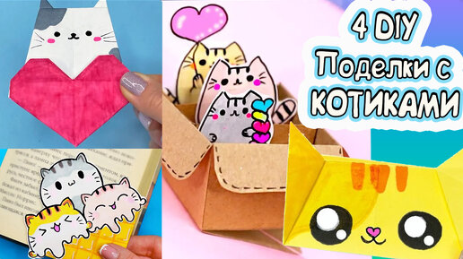 ПОДЕЛКИ с Котиками из бумаги! 4 идеи - Открытка, закладка, коробочка и оригами котик