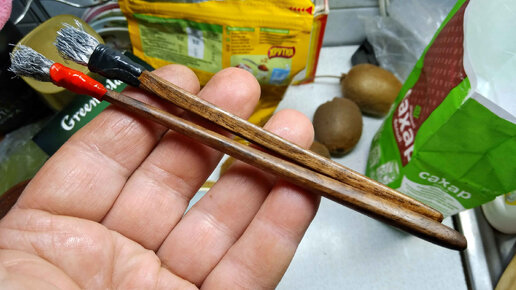 Самодельные кисточки из нержавеющей проволоки с рукоятками из грецкого ореха.