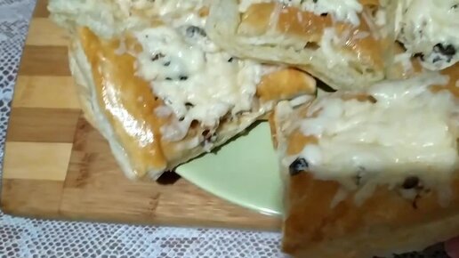 Слойки с курицей и грибами,мой способ, очень быстро, без формовки!