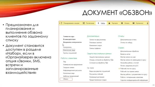 Документ "Обзвон" в программном продукте 1С:Управление учебным центром