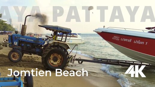 Застрял трактор буксируя большой катер в Тайланде