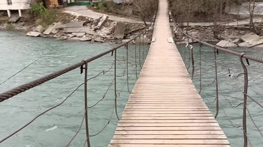 Сочи, Адлерский район. Старый подвесной мост через реку Мзымту в Ахштырском каньоне.
