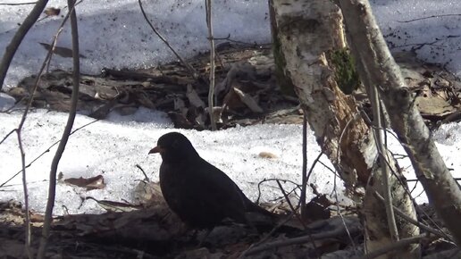 Черный дрозд после прилета