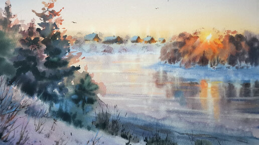 Далее: Зима в деревне акварелью speedpaint