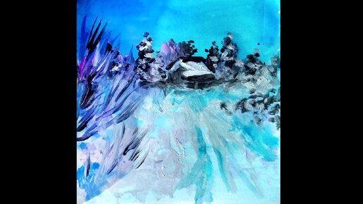 Синий зимний пейзаж - рисунок акрилом поэтапно