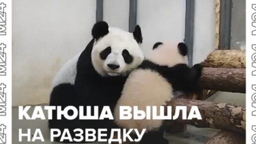 Панда Катюша пошла на разведку в большой вольер