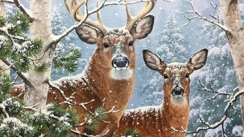 ОЛЕНИ В ЗИМНЕМ ЛЕСУ 4 РЯД 4 ЛИСТ