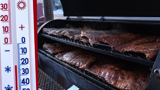 Цыпленок и ребра барбекю в -20C° на Смокере, ресторан Нильс, Истра