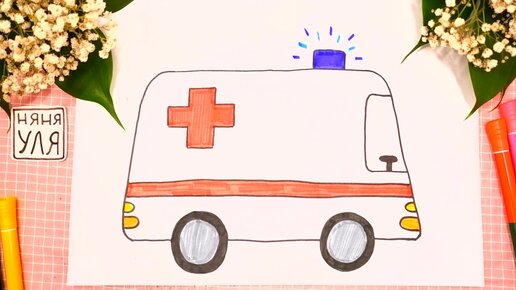 Как нарисовать машину СКОРОЙ ПОМОЩИ | Рисуем ТРАНСПОРТ | Няня Уля - Уроки рисования для детей