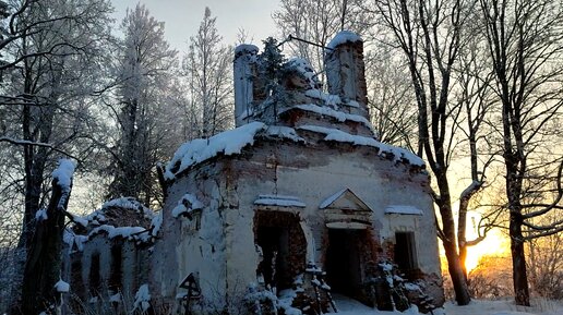 Встречаю рассвет у руин Покровской церкви. д. Васькины Нивы. (Лен.обл).