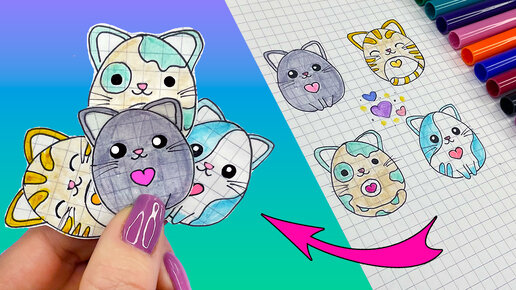 Кото НАКЛЕЙКИ своими руками! Рисуем ПО КЛЕТОЧКАМ! Простые поделки для детей
