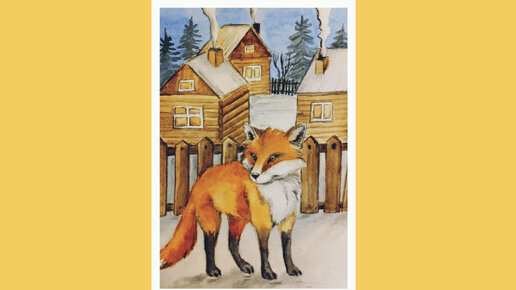 Рисуем акварелью. Лиса в деревне. Мастер-класс для начинающих.