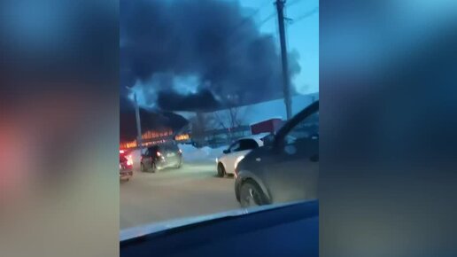 Пожар на рынке в Челябинске, снятый из авто (19.01.2024)