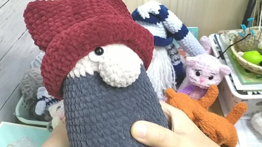 Вязание игрушек. Скандинавский гном из плюшевой пряжи и другие процессы и готовые игрушки