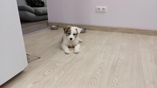 Щенок заигрывает перед кошками