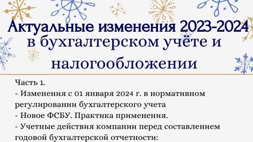 Актуальные изменения в бухгалтерском учёте и налогообложении 2023-2024
