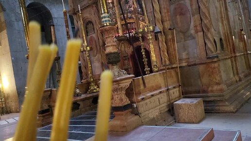 Мне подарили все пять свечей, которыми благословлял Патриарх верующих на Крещенской Литургии в Храме Гроба Господня