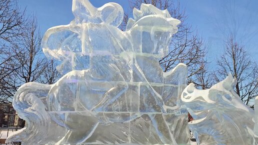 Сверкающие на солнце ледяные скульптуры в парке Музеон