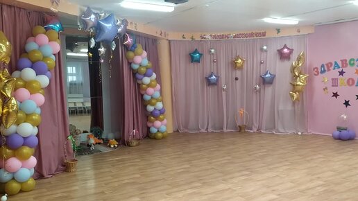 Оформление Музыкального зала воздушными шарами на Выпускной в детском саду