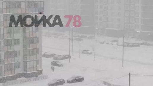 Это не туман, это снег. Такая метель обрушилась 19 января на Петербург и Ленобласти. На видео областной город Мурино.