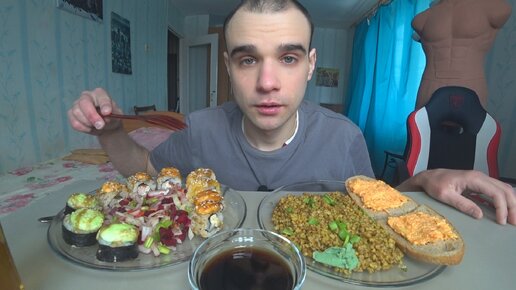 МУКБАНГ ГРЕЧКА / РОЛЛЫ ЗАПЕЧЕННЫЕ / САЛАТ ОВОЩНОЙ / БУТЕРБРОДЫ / ОБЖОР / EATING Mukbang ASMR АСМР